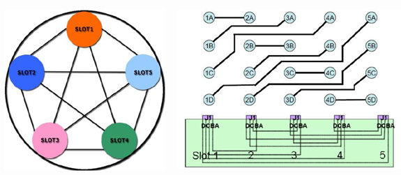 背板符合VITA46.10中BKP6-DIS05-11.2.16-X标准要求,拓扑结构为FULL MESH全互连架构,如下图所示:
